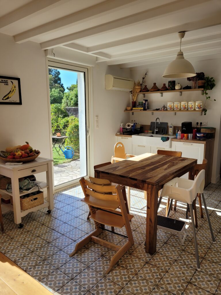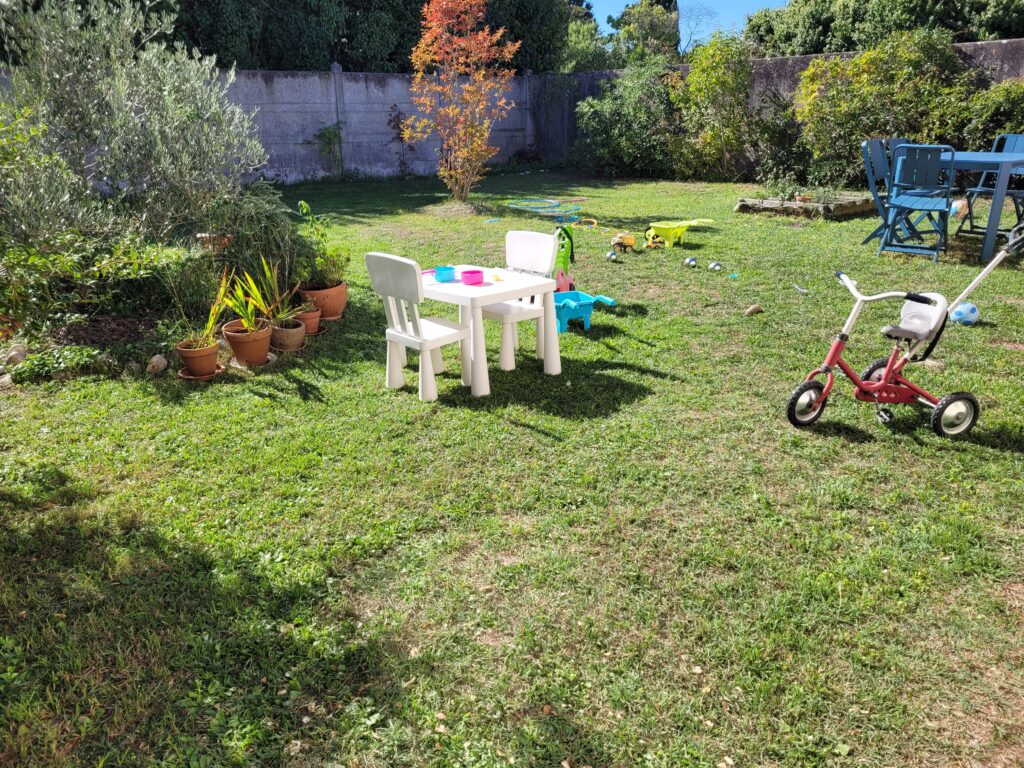 Un jardin clos agrémenté de jeux d’extérieur et d’un carré de potager est également à la disposition des enfants.